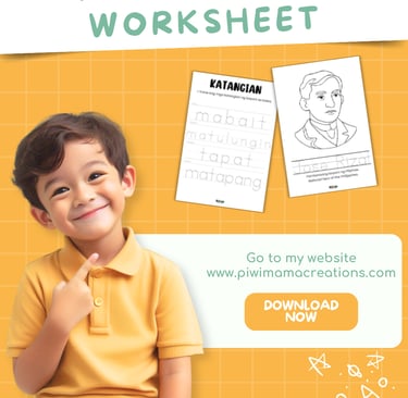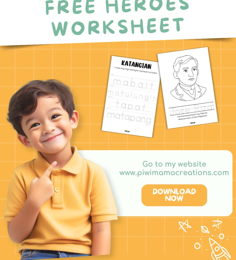 April’s first worksheet set is inspired by the Bantayog ng mga Bayani festival — a celebration of Filipino heroes. And of course, we can’t talk about heroes without mentioning our national hero, José Rizal.