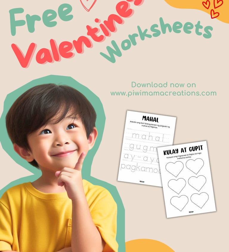 Valentine’s Day is coming, and this time I made simple Filipino-themed worksheets your little ones can enjoy while learning and playing. No pressure, no prep overload—just easy activities you can pull out during quiet time, playtime, or while waiting for food.